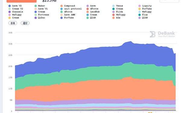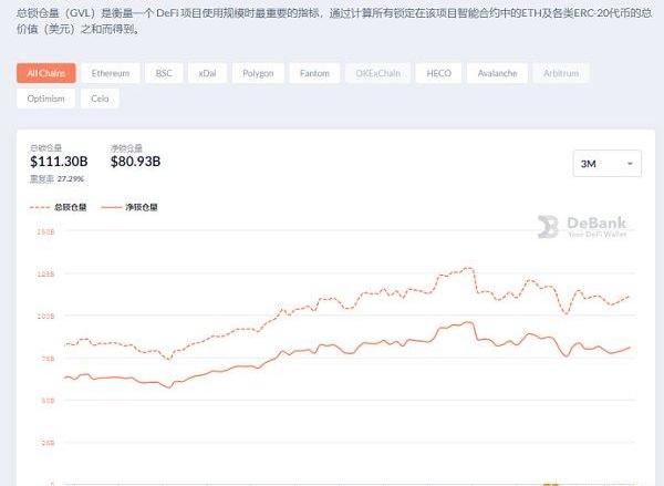 DeFi項目鎖定資產前十排名及鎖倉量,數據來源:Debank