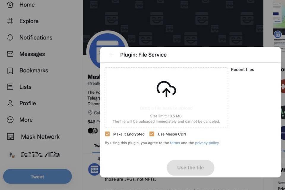 在社交平臺上集成有關NFT的一系列服務以及文件分享離不開存儲基礎設施。為此,MaskNetwork支持用戶直接在Twitter和Facebook上使用去中心化文件存儲服務,目前支持Arweave,之后將支持IPFS、Sia以及Swarm。此外,MaskNetwork在積極與其他存儲、存儲加速網絡Meson以及鏈上內容協議RSS3等項目合作或進行投資來增加對其底層基礎的建設以及拓展應用場景。