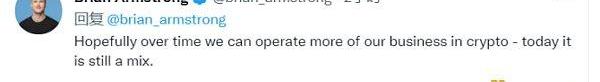此外,BrianArmstrong還在回復中指出,隨著時間的推移將在加密領域開展更多的業務。