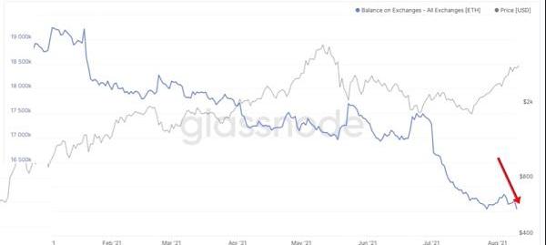 要看的第一件事是外匯余額。這是因為它可以讓我們大致了解可能從可交易供應中取出多少ETH。