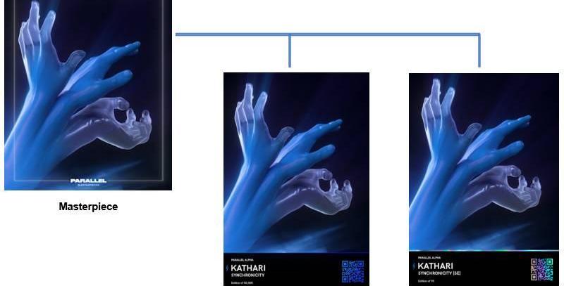 Parallel中另一特殊非實用功能卡為Masterpiece,該卡不帶二維碼,發行版次僅有1張,持有該卡可以獲得對應類型卡片在二級市場轉售時1%的版權費,并按季度發放。該卡獲取途徑為預售、二級市場購買或者補充包購買。