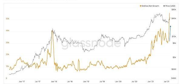 比特幣持倉實體凈增加值創歷史新高,表明資金仍在持續進場?