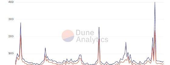 網絡基礎費用在30~60Gwei區間震蕩;平均Gas費用在35~70Gwei區間震蕩;結合可知,網絡交易小費在5~10Gwei區間震蕩。