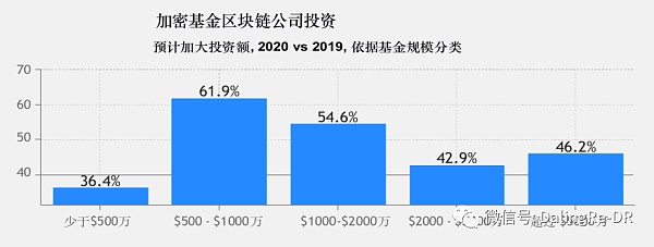 按基金規模分類,除了管理資產在2000至5000萬美金的基金外,其它不同規模的基金都同意covid-19所帶來的影響將導致機構投資組合中的加密資產投資占比增加。