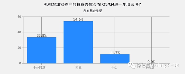86%的受訪的基金認為,機構對各類加密資產表現出投資意愿,并且他們相信機構對加密資產投資的意愿在第三季度有所增長。