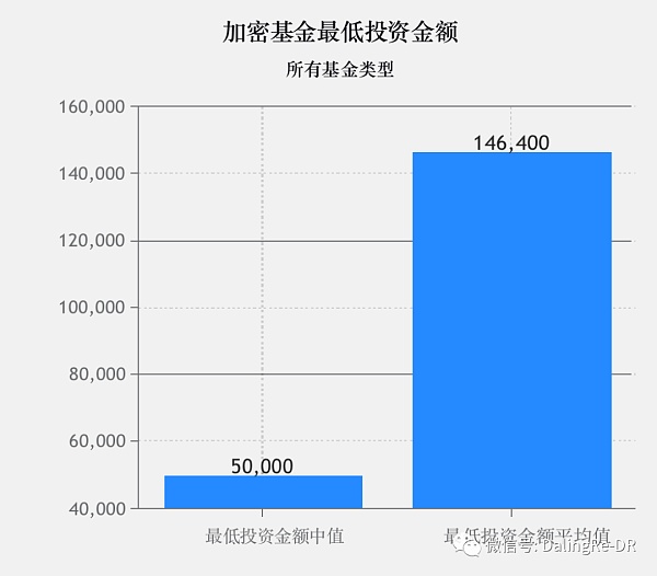 在加密基金中,基金類型不同,投資最低金額也差異較大。通常,加密對沖基金和母基金的最低投資金額最高,而通證化基金的最低投資金額最少或者沒有。