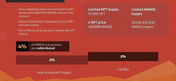 這種內置的NFT收益和DeFiToken重新分配系統產生的雙重Token經濟模型,最后會吸引更多玩家進場購買NFT土地以成為火星房東,這都致使MARS$Token具有著極強的爆發潛力。