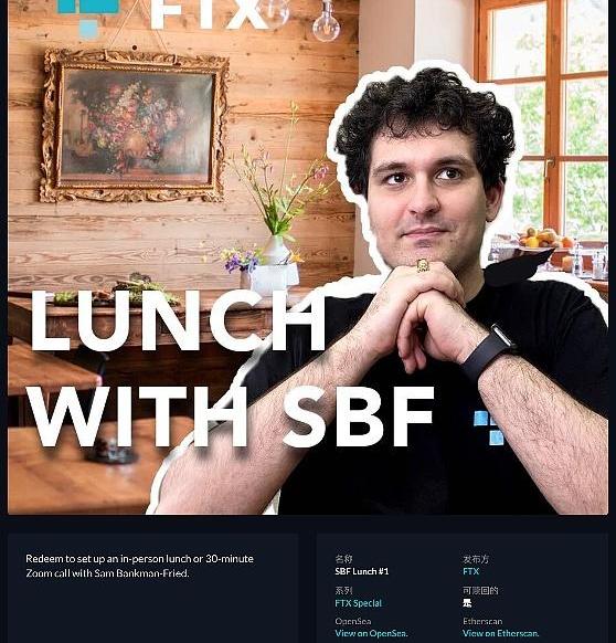 成功競拍該NFT的用戶可與FTX創始人SBF共進一次午餐或進行一次30分鐘的Zoom對話。該NFT最高出價達到11萬美元。