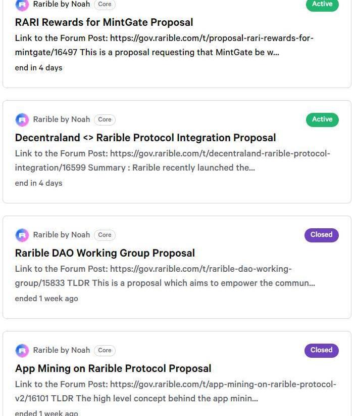 Rarible社區2021年7月提案話題,來源:Snapshot