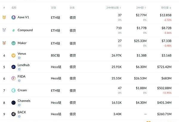 鎖倉量排名前十的借貸平臺排名來源:DeFibox