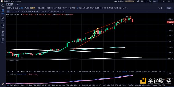 就在剛剛,比特幣快速下跌至火幣網價格17125美金,從高點19485至當前低點最大跌幅高達12%。如果讀者最近幾天有讀過本ID的文章,就應該知道比特幣在本周就會有這樣的下跌。我在最近幾篇文章中反復提及,比特幣已經在周線和月線上同時進入到瘋漲唐僧位上。這個位置是多頭利潤最豐厚的位置,同時也是多空轉換會隨時發生的位置。因此從上周末開始我就一直在反復強調多頭盡頭將至,空頭隨時可能發動4小時至周線級別的回調。