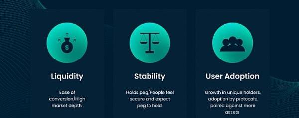 上圖描繪了截至今天具有相對穩定錨定的穩定幣的供應量。即使是那些幸存下來的穩定幣也不能說一定會成功,因為價格穩定只是增長的支柱之一。要取得成功,穩定幣協議必須實現流動性、穩定性和用戶采用率這三個增長目標。