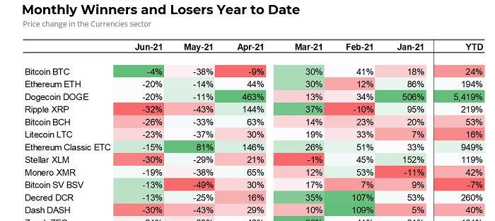 哪些數字貨幣在2021年二季度表現糟糕?