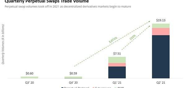 2021年第二季度最重要的發展是永續合約協議的崛起。盡管與dYdX這樣的老牌企業相比,PerpetualProtocols起步較晚,但其目前為投資者提供了永續掉期市場上最多的交易選擇,并控制了絕大多數去中心化期貨交易量。