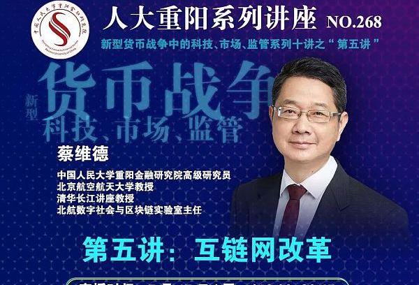 XRP/HKD-2.03%編者按:5月17日,中國人民大學重陽金融研究院高級研究員、北京航空航天大學教授,清華長江講座教授,北航數字社會與區塊鏈實驗室主任蔡維德,在人大重陽主辦的“新型貨幣戰爭的科技、市場、監管”系列直播活動第五講中,分享了他對“互鏈網改革”的最新思考。以下為直播視頻及實錄。
