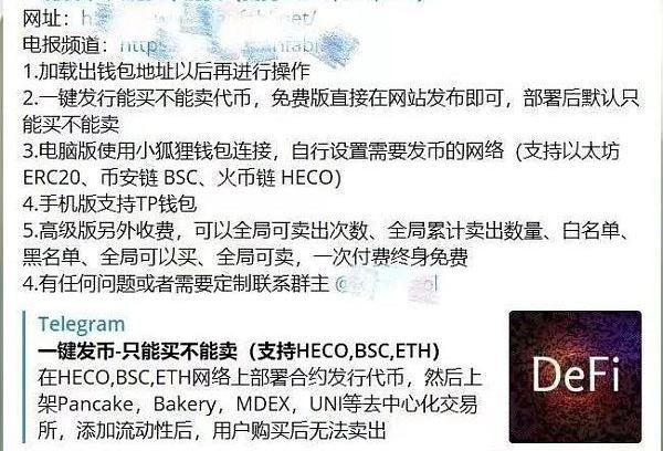除此之外,我們還發現了“一鍵發行代幣”的電報群,發布假幣的公告一直在對話框刷新,值得注意的是,公告顯示該代幣只能購買不能賣出,很多用戶正是被這樣的假幣所騙。