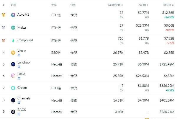 鎖倉量排名前十的借貸平臺排名來源:DeFibox