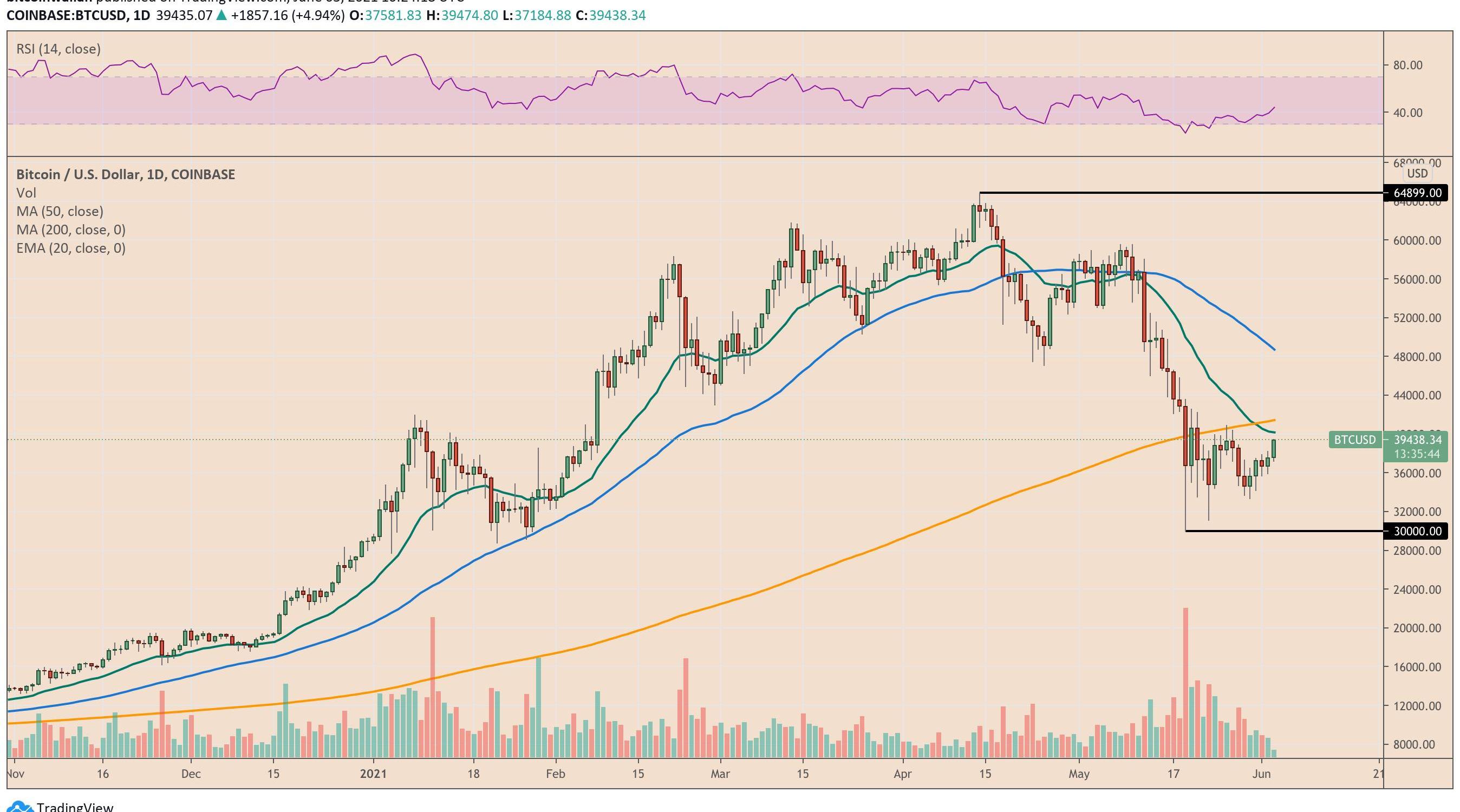 在馬斯克批評加密貨幣的碳足跡后,加速了比特幣修正情緒。來源:TradingView上的BTC/USD