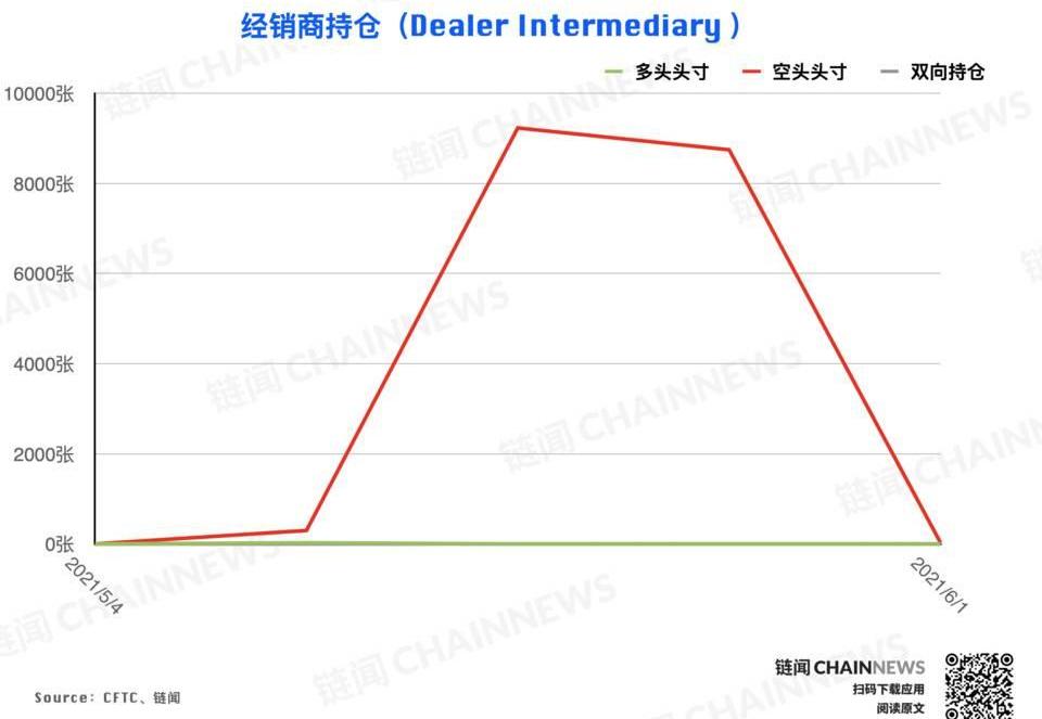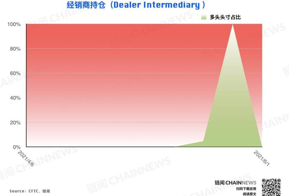 分項數據上來看,規模最大的經銷商持倉多頭頭寸自6張下降至0張,空頭頭寸保持0張不變,多空雙向持倉自38張下降至0張。經紀商賬戶在最新統計周期內清空了此前持有的所有頭寸,不過考慮到此前持有的倉位有限,因此這種調倉并不存在過多解讀的價值。