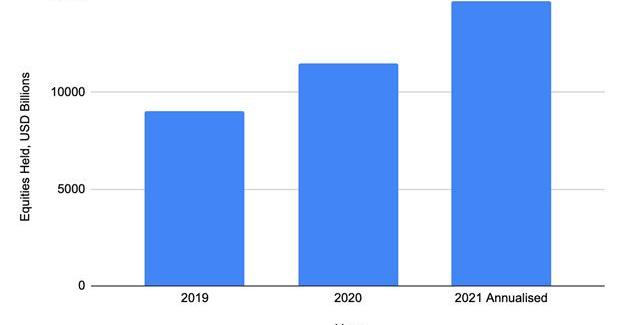 為了保持他們的國債存量,他們需要購買一組不同的美元資產,這些資產不會因通貨膨脹的政府政策而明顯貶值。美國股市,特別是后COVID行為的受益者科技股在2020年吹響了大門。外國人沒有購買債券,而是變得聰明并大量進入股票市場。