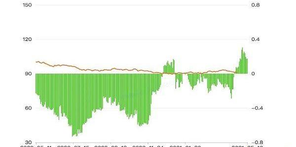 但進入2021年,這樣的關聯關系被打破了。美元指數一度觸底,并在90附近徘徊,而且沒有展現出顯著反彈的動能,這真實地反應出外匯市場對美元存在的擔憂。期間,btc與其30天的相關性也出現了多次反轉,在正相關與負相關之間搖擺,而且絕對值都在<0.4的弱相關區間內。這樣的不穩定性表明:市場對于比特幣未來能否作為美元的避險資產還未達成一致,宏觀經濟因素、突發事件等都會影響這類年輕資產的歷史定位。