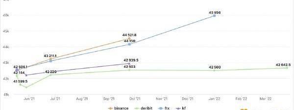 Orca交易員JulienSterz指出,Deribit期貨價格與Binance和FTX等其他交易所的價格存在有趣的差異。