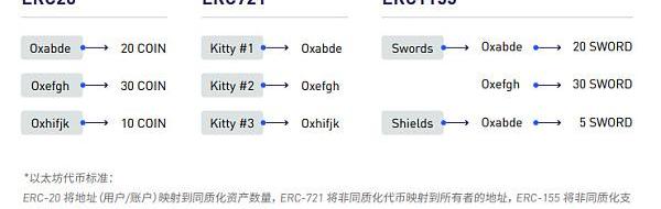 ERC-721標準誕生于Cryptokitties,為最早被以太坊社區認可的NFT資產建構協議,亦是目前應用最廣技術標準,它由ERC-20標準演變而來。ERC-721標準則適用于收藏品類資產,如在CryptoKitties中,ERC-721標準賦予NFT資產加密貓所有權、發行權和訪問控制權。