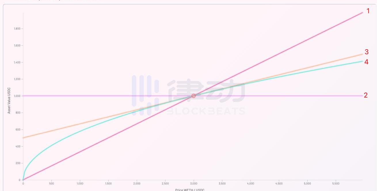 以ETH-USDC交易對為例。對于看多ETH的投資者,全倉持有ETH便可以作為他的評價基準;對于看空ETH的投資者,全部持有美元便可以作為他的評價基準;對于預期ETH價格不會發生明顯波動的投資者,保持現狀不參與做市,便可以作為他的評價基準。