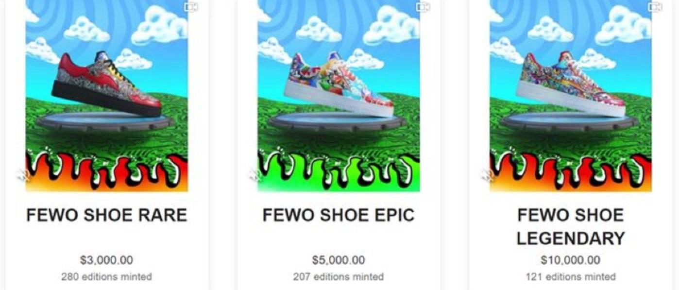 今年3月,RTFKTStudios與18歲加密藝術家Fewocious推出聯名鞋款,僅開賣七分鐘便售出600余雙,總價值超過310萬美元,平均計算每雙球鞋價值達到了4992美元。