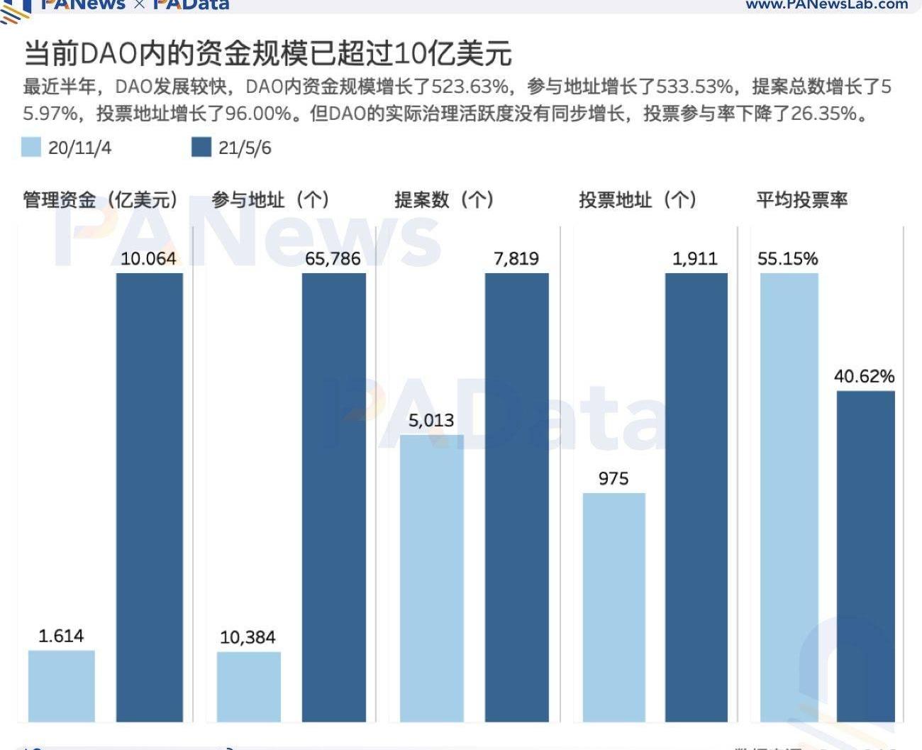 流動性挖礦已經展示了DeFi在協調和分配全球資本方面的潛力,DAO或將深化這一點。PAData時隔半年再次回顧DAO的資金、提案和用戶數據后發現: