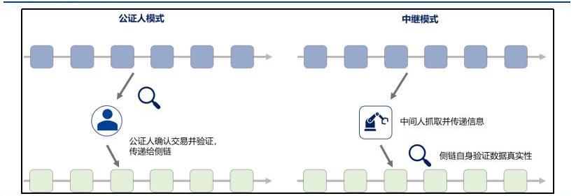 側鏈技術路線的重點在于跨鏈機制的設計。跨鏈機制的基本原理就是通過鎖定主鏈上的資產,并在側鏈發行相關資產,如果想要回到主鏈,只需要銷毀側鏈上的資產,并在主鏈上解鎖相關資產。因為區塊鏈自身不能獲取其它鏈上信息,那么誰傳遞并確認信息從而決定資產的鎖定與發行就成為了關鍵問題,為了解決這個問題,可以采取通過第三方主體驗證的公證人人機制,或者通過區塊鏈自身進行驗證的中繼機制。公證人可以采用單一主體,也可以是是多個主體進行驗證并多簽確認交易。