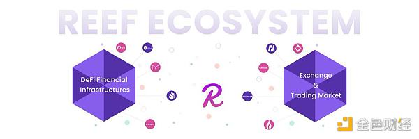 Reef 通過與經紀商合作與 CEX 進行鏈下客戶端集成 還與 DEX 進行鏈上集成: