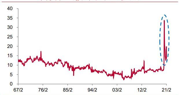 從美國的情況來看,疫情使得人們更多地選擇把錢儲蓄起來,而并不是去進行消費,季調后的個人儲蓄占可支配收入比重曾超過30%,而今年2月這一比值仍高達13.6%,除去疫情期間,這也創下了1976年以來的新高。