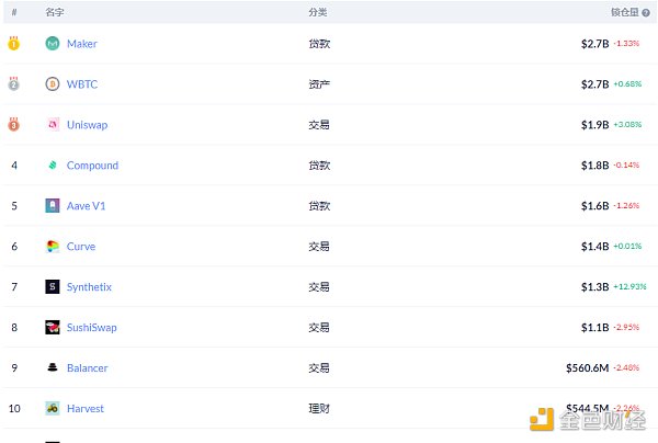 DeFi項目鎖定資產前十排名及鎖倉量,數據來源:Debank
