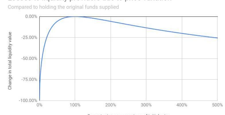 但是,AMM池中的LP會面臨一些固有風險和效率低下的問題。最重要且相對深奧的風險是無常損失,即在向AMM池中提供流動性與持有基礎代幣之間的資產組合價值隨時間而形成的差異。