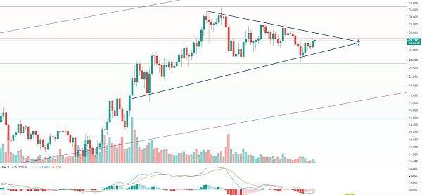 趨勢支撐27美金不破,中長線可以繼續持有,大方向多頭趨勢未變,指標線低位金叉后,有望啟動新一輪波段行情,回落分批低吸。