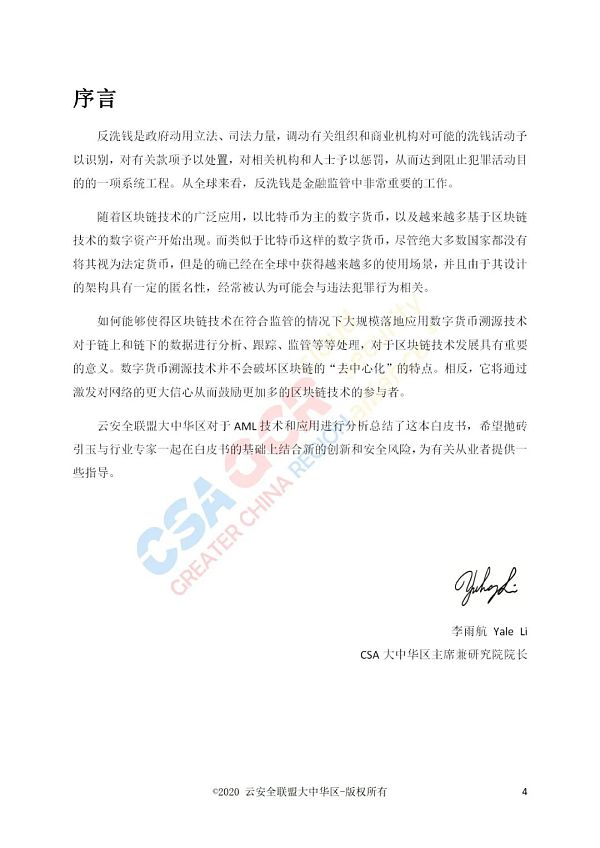 云安全聯盟大中華區在2020云安全聯盟大中華區大會上發布了《數字貨幣溯源技術白皮書》,對AML技術和應用進行分析總結,希望拋磚引玉,與行業專家一起在白皮書的基礎上結合新的創新和安全風險,為有關從業者提供一些指導。
