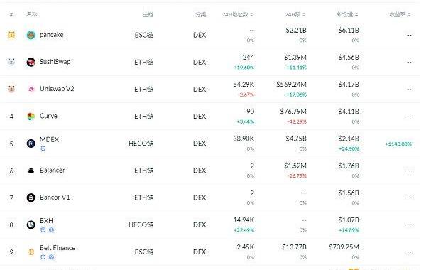 過去24小時去中心化交易所的交易量數據來源:Debank