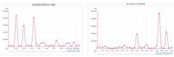 波卡官網還提供了查看每日解除質押的DOT數量和每日質押的DOT數量。