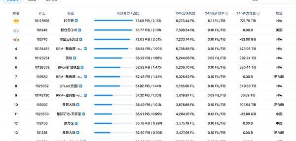 挖礦排行榜,數據來源:https://filfox.info/zh