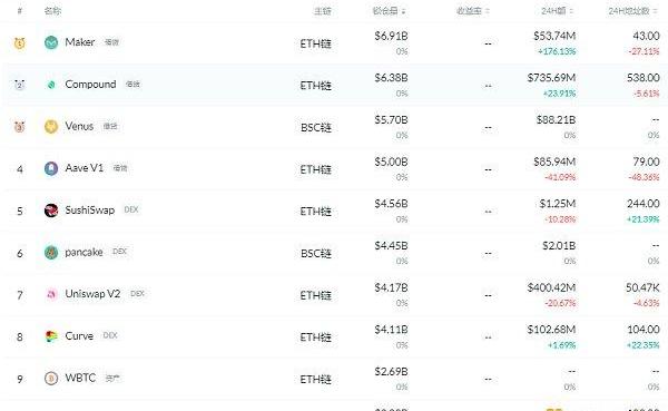 鎖倉量排名前十的借貸平臺排名來源:DeFibox