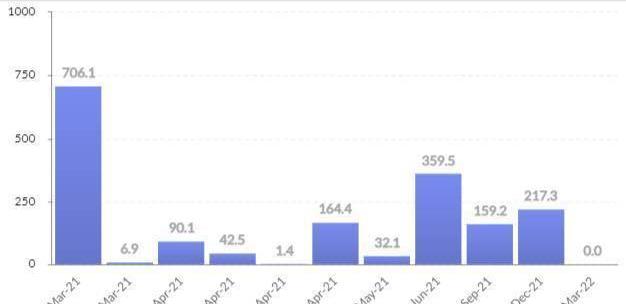 截至3月25日,比特幣期權未平倉頭寸中,行權價為4.4萬美元的未平倉頭寸最多,達2.14萬枚比特幣。以太坊中,行權價為1600美元左右的未平倉頭寸最多,達9.52萬枚以太坊。
