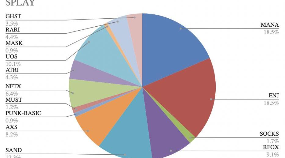 PLAY是PieDAO和NFTX社區合作的產物,NFTX是一個NFT資產的ERC-20指數DAO社區,其為不斷增長的NFT市場提供容易的敞口和流動性,在PieDAO提出PLAY指數提議之后,NFTX參與了進來,使得用戶能夠完全接觸到Metaverse,包括領先的ERC-721NFT,例如CryptoPunks和Hashmasks。