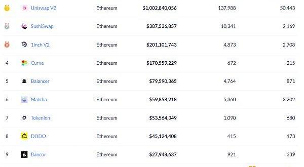 DeFi排名前十鎖倉量數據來源:DeFiPluse