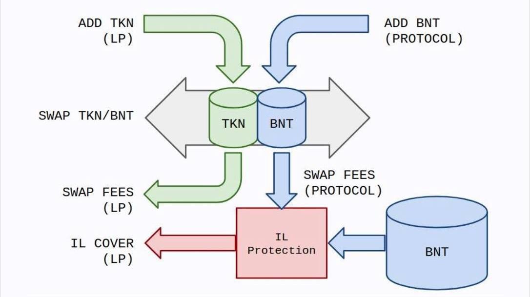 使用基于協議的BNT進行初始流動性匹配是一個強大的功能,它克服了“先有雞還是先有蛋”的問題,同時不會稀釋BNT的循環供應。任何最終發生的BNT銷毀,也將包括協議從池中積累的互換費用份額。只要交易發生在鑄幣和銷毀事件之間,因為銷毀的BNT數量將大于初始鑄造的BNT數量,這會導致更大的BNT短缺。因此,該協議自動對自己進行共同投資,并將獲得的利潤返還給BNT,使其增值。