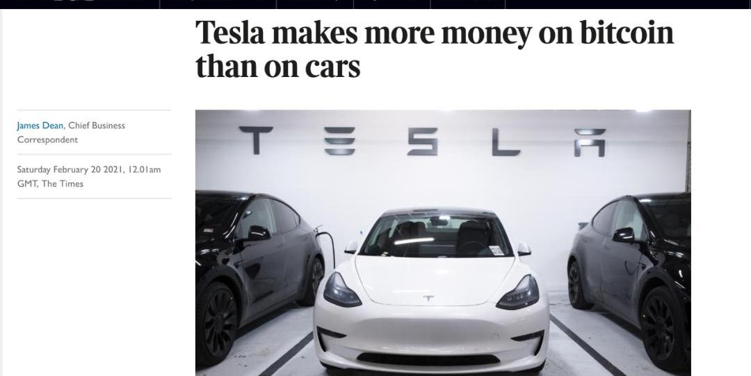 《泰晤士報》揭示了答案,自1月以來,特斯拉購買比特幣的賬面利潤約為9.3億美元。這比它2020年賣車的凈利潤,還高上30%。