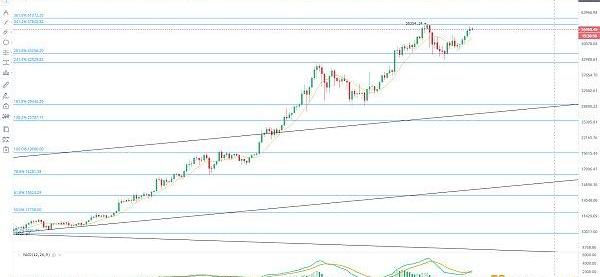 日線6連陽后的正常整理,前高58350一線阻力還需消磨,蓄勢后上破的概率大,不破10日均線持有為主,回落附近不破低吸,調整后近期目標61000美金。