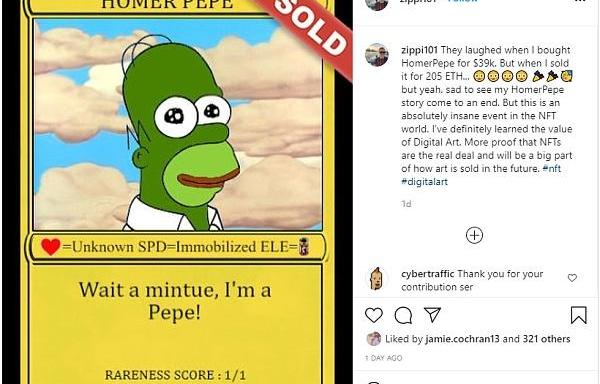 此外,卡通青蛙HomerPepe以32萬美元售出;Grimes的一系列NFT賣出了600萬美元的高價;MarkCuban的一條推特賣出了952美元……