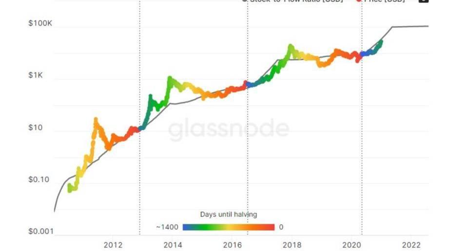 有一個容易計算的指標,完全基于比特幣不斷減少的供應量排程,就是所謂的存量流量比(stock-to-flowratio)。