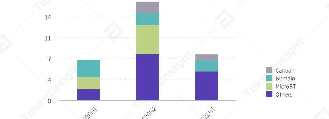 從2020年至今,新發礦機廠商數量呈現逐步下降趨勢。與2020年以前的“百花齊放”相比,2020年開始,僅有11家廠商推出共33款新礦機。其中,比特幣礦機共17款,占比略過半數;以太坊礦機4款,發布時間集中于2020年下半年。隨著以太坊市場的發展,頭部礦機廠商亦開始在以太坊礦機方向發力,但Bitmain、MicroBT等廠商目前為止尚未推出以太坊礦機。考慮到以太坊的巨大潛力,可以預見,2021年,以太坊礦機將是各大礦機制造商及新入制造商的重要角力點。